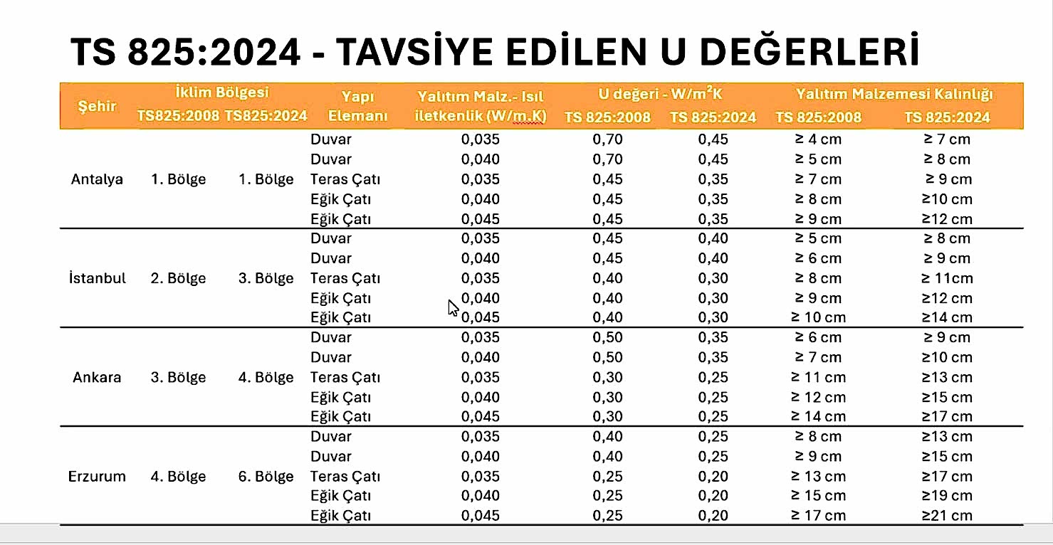 - Doğu Anadolu bölgesi enerji verimliği için 16 cm iken, mevcut uygulama kalınlığı 8 cm dir.